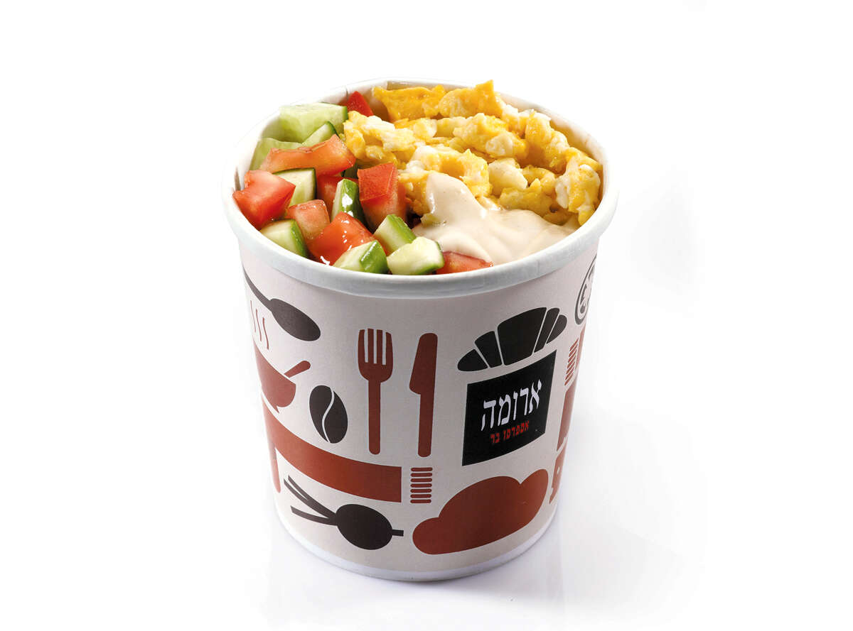 ארומה ישראל השיקה לאחרונה את "בוקר בקטנה", ארוחת בוקר המוגשת בגביע. הארוחה מכילה: מקושקשת מביצה אחת, סלט ישראלי קצוץ וטחינה. את הארוחה מציעה ארומה ישראל במסגרת שיתוף פעולה עם מכון וינגייט, לקידום אורח חיים בריא ופעיל בישראל. המנה עצמה היא פתרון טוב למי שרוצה משהו קטן על הדרך, אבל בישיבה היינו מעדיפים ארוחת בוקר רגילה. קצת קשה לערבב את המנה, הביצה המקושקשת נגמרת מהר ונשארים רק עם הסלט ומעט טחינה. מחיר: 19 שקלים