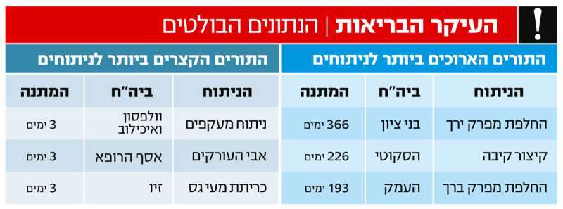 אתמול פירסם משרד הבריאות דו"ח המפרט את זמני ההמתנה לניתוחים אלקטיביים בבתי החולים בישראל. הדו"ח נערך לבקשת שרת הבריאות יעל גרמן, והוא כולל ניתוחים שאינם דחופים וכאלה המתוכננים מראש. הדו"ח אינו כולל את בתי החולים של הכללית וגם את בית החולים הדסה, שבשל הקשיים לא העביר את הנתונים.
