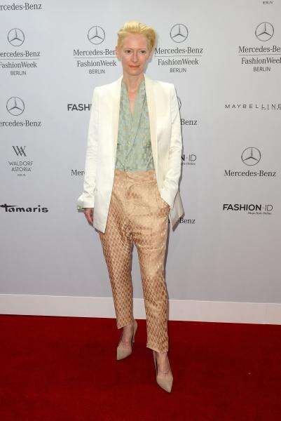 טילדה סווינטון מביאה את המוזרות מהבית. היא נראית שונה, והיא לגמרי יודעת להתאים את הבגדים לאיך שהיא נראית. הבגדים שהיא לובשת היו נראים הזויים על כל אחת אחרת, אבל היא יכולה להרשות לעצמה. אז היא בוחרת בחולצה ובמכנסיים שיש להם את אותה הדוגמה אבל לא את אותו הצבע. מעל חליפת המשי הזו היא עוטה ז'קט אובר סייז בצבע לבן. אל תנסו את זה בבית, יש רק אישה אחת בעולם שמסוגלת.