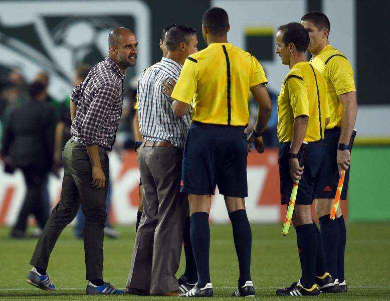 בסיום המשחק, גווארדיולה מאמן באיירן, סירב ללחוץ את ידו של מאמן קבוצת הכוכבים האמריקנית, הספרדי רתח על עבירה שבוצעה על שוויינשטייגר והתפרץ לעבר המאמן קיילב פורטר שניסה ללחוץ את ידו של פפ.