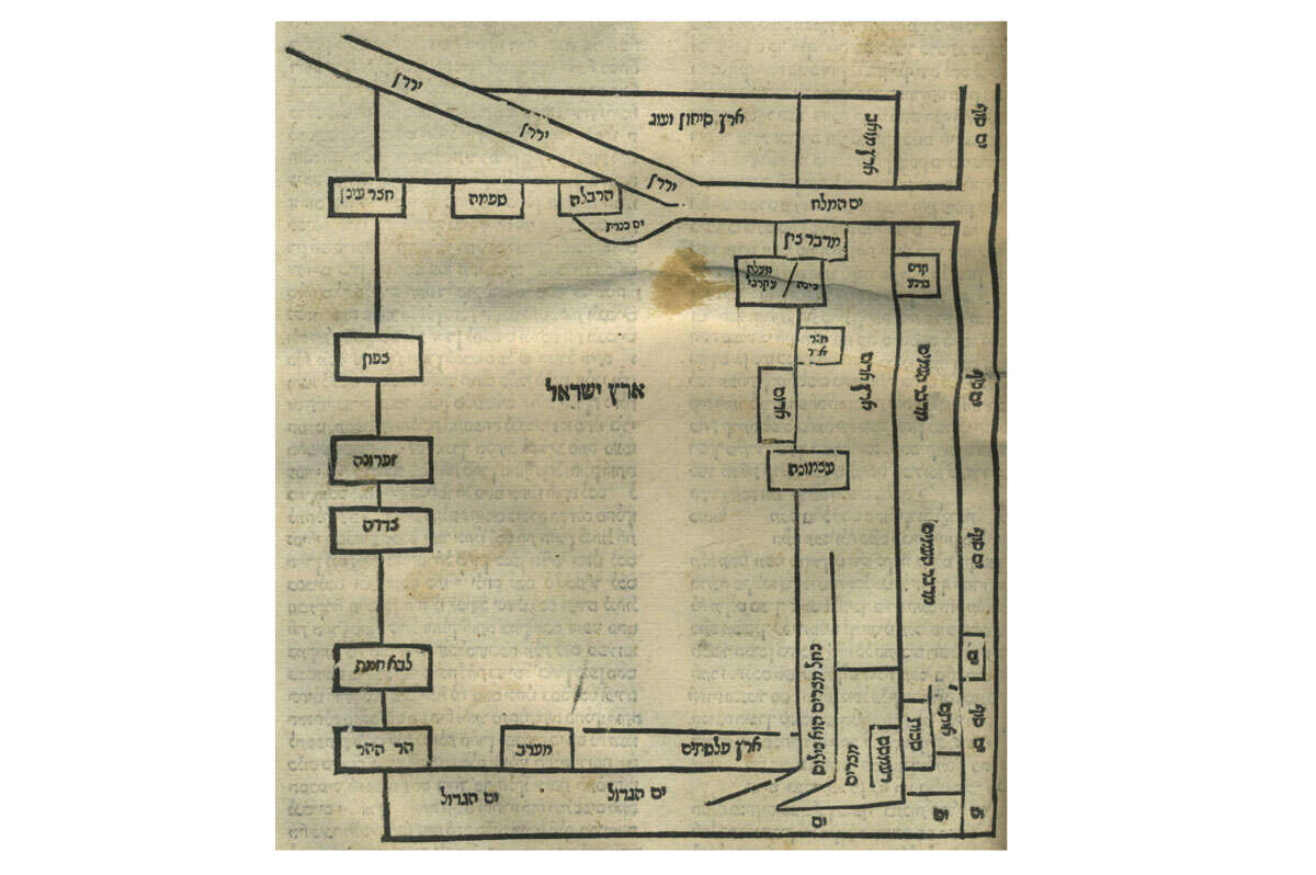 ריבוע אחד גדול, ומסביב הירדן, הכנרת, ים סוף ו"הים הגדול". כך נראית המפה העברית הראשונה של ארץ ישראל שהודפסה, ואשר נמכרה אתמול במכירה פומבית בסכום של 2,100 דולרים.