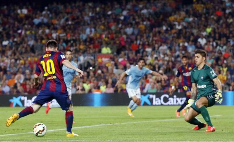 מסי מכניע את שוער אייבר // צילום: רויטרס