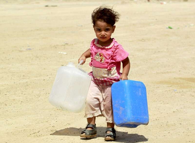 ילדה עיראקית נמלטת עם מיכלי מים // צילום: אי.אף.פי