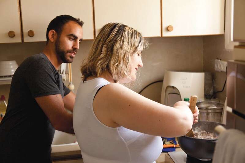 סיסי מכינה עוגת תפוחים בחושה, בעזרת איתי נוי // צילום: איתיאל ציון