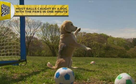 פורין הכלבה בת ה-9 מיפן שתפסה הכי הרבה כדורים בדקה בעזרת רגליה הקדמיות // צילום: יו-טיוב