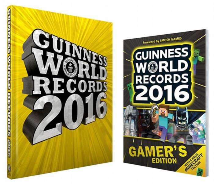 ספר השיאים של גינס 2016, וגירסת ה"גיימרים" שעוסקת בשוברי השיאים בתחום המשחקים // צילום: יו-טיוב