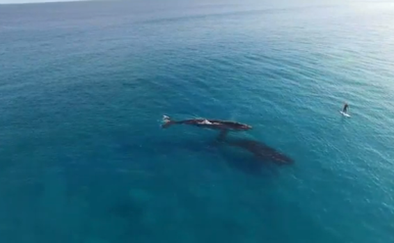 אוסטרליה: זוג לווייתנים נתפסו בעדשת מצלמת רחפן במה שנראה כסרטון נדיר ומרהיב ביופיו. נראה שהיצורים העצומים הסתקרנו מגלשן ששחה בסמוך להם והם מתקרבים אליו עד כדי מטרים ספורים.