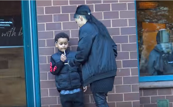 במהלך הסרטון נראה ילד קטן, בן 10, שפונה לזרים מעשנים ברחוב ומבקש מהם לסייע לו להדליק סיגריה. מרבית האנשים דוחים אותו, ודורשים ממנו לעזוב אותם, אך באחד המקרים, אישה זרה בחרה דווקא לעודד אותו לעשן ואף סייעה לו להדליק את הסיגריה.
