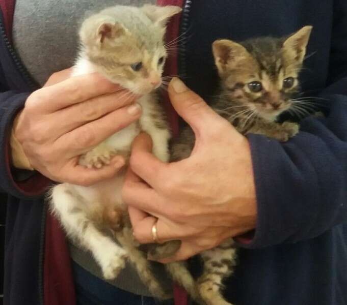 גורי חתולים מתוקים במיוחד - חמישה גורי חתולים מתוקים במיוחד ננטשו בכלוב ליד חנות חיות בת"א. בכל יום אנחנו נתקלים בסיפורים כאלו של חתולות בית בממליטות ואח"כ כשאין מה לעשות עם הגורים הם פשוט מושלכים לרחוב. רובם המכריע לא מצליחים לשרוד שם ומתים בייסורים. מעטים ברי מזל נמצאים ע"י אוהבי בעלי חיים שמוכנים לדאוג להם ולמצוא בית מאמץ. חמשת הגורים האלו הם בני ברי המזל.... שלושה כבר אומצו והשניים הנותרים נמצאים עכשיו באומנה מקסימה שלנו ויגיעו ליום האימוץ ביום שבת בהרצליה. הם בני כ 5-6 שבועות וניתן לאמצם טלפונית גם באמצע השבוע.