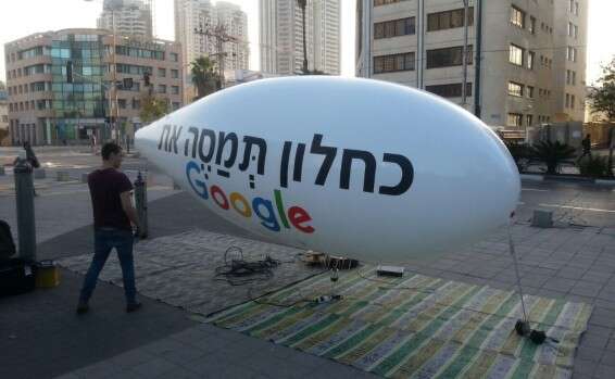 לפני כשבוע פורסם ב"ישראל היום" על מחאה שקראה למסות את חברת גוגל. במחאה היה צפלין לבן שנופח על המדרכה, עליו הכיתוב "כחלון תֶמַסֶה את גוגל" שהוצב מול הכבישים הסואנים הסמוכים למחלף השלום בתל אביב. מסר דומה בשפה האנגלית נכתב מצדו השני של הצפלין. הצפלין הורם אל על, לגובה של 25 מטרים.