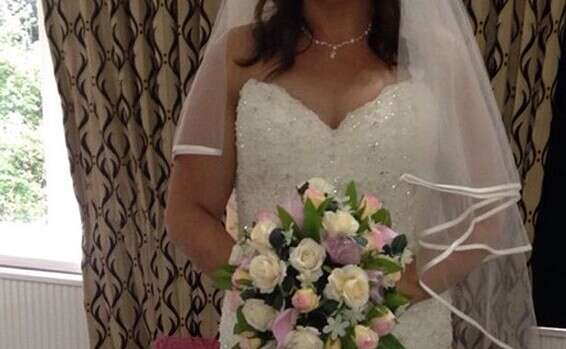 אחרי שניסתה קומץ של שמלות, נאלצה הכלה לעתיד להתפשר על שמלת נסיכה ענקית במחיר של 1,250 יורו, עם כמויות בד נשפך, בתקווה שיסתיר את גזרתה העבה.