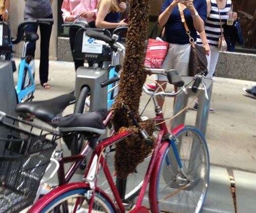 קהל צופים התגודד במרכז העיר שיקאגו כדי לצפות במחזה יוצא דופן: נחיל דבורים נצמד לעמוד חשמל ברחוב, אליו היו קשורים שני זוגות אופניים. הדבורים התאספו בתחילת השבוע על עמוד סמוך לשדרת מישיגן, ומנעו למספר שעות את הגישה לשני רוכבי אופניים, לרוע מזלם.