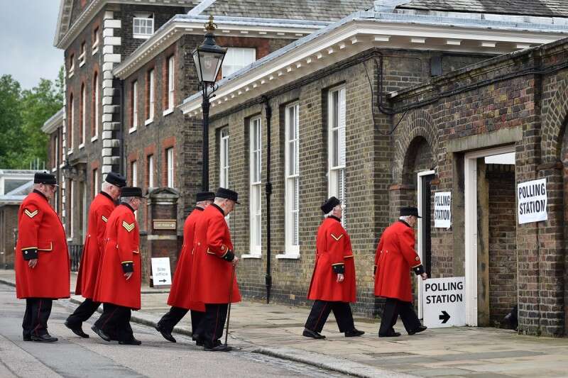 "הפנסיונרים של צ'לסי" - ותיקי הצבא הבריטי - צועדים לקלפי בלונדון // צילום: אי.פי.אי