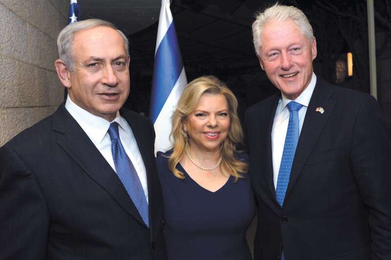 נשיא ארה"ב לשעבר קלינטון עם רה"מ ורעייתו, אתמול // צילום: חיים צח/לע"מ
