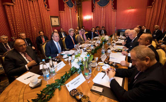 הנוכחים בשיחות הם מזכיר המדינה של ארצות הברית ג'ון קרי, לברוב, שרי החוץ של ירדן, טורקיה, מצרים, קטאר, איראן, עיראק וערב הסעודית.