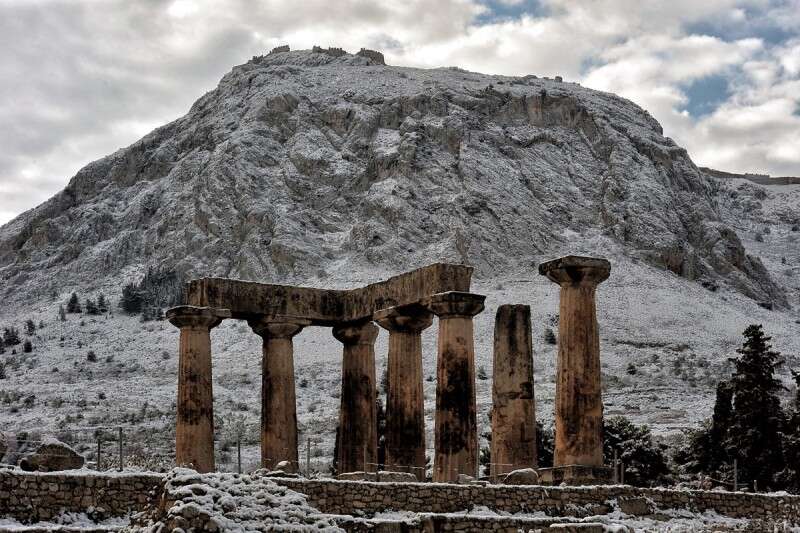 יוון. גם העתיקות התכסו שלג // צילום: אי.פי.אי