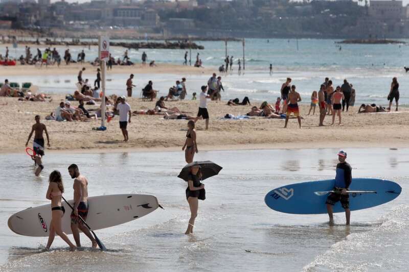 מבלים בחוף הים בתל אביב, היום // צילום: גדעון מרקוביץ'