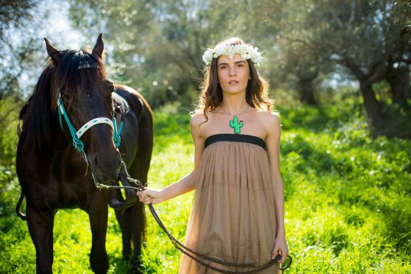 2 קיארה לובשת שמלה (TOPPATSU, 399.90 ש'), ועונדת שרשרת קקטוס (Papel Studio, 140 ש')