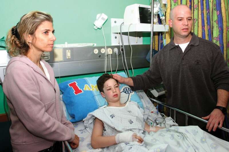 עם הוריו טלי וגיא בבית החולים לאחר הפציעה. "קטיעה מתחת לברך, כמו שאני עברתי, היא פשוטה יותר מכריתת רגל מעל לברך" // צילום: הרצי שפירא