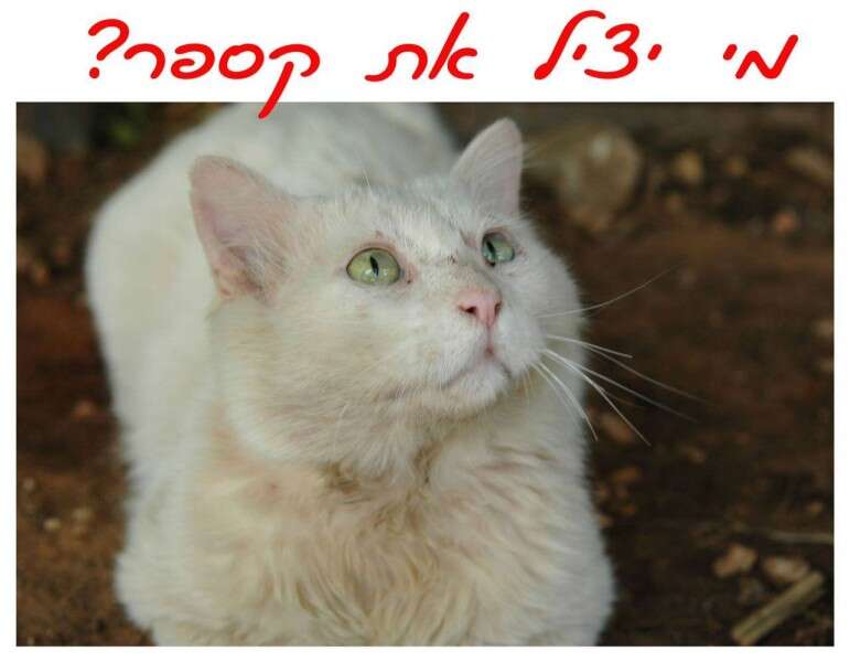 קספר - אז מי יציל את קספר? חתול אנגורה מעורב בן 4, שהתחיל את חייו כחתול בית עדין ומתלטף, עד שלבעלים שלו פשוט נמאס והם שיחררו אותו לרחוב. וכך, מחתול בית מוגן ומפונק הוא הפך לחתול שנאלץ להיאבק על מקומו ברחוב, והוא למד שבשביל לשרוד צריך להילחם. בדרך הוא איבד את שמחת החיים, את העדינות, וכל כלב וחתול אחר הפכו מבחינתו לאויב. קספר נאסף מהרחוב פצוע וחבול, ועבר שיקום ארוך כדי לטפל בכל הפצעים שבגוף. אבל את הפצעים של הנפש יותר קשה לתקן, ובינתיים קספר סגור בכלוב לבד בפנסיון, פשוט כי הוא לא מסתדר עם אף בעל חיים אחר. בתוך תוכו קספר פשוט רוצה לחזור להיות חתול אחד ויחיד בבית שיהיה רק שלו. ובנינו, זו לא בקשה גדולה מדי. מה הוא כבר מבקש? בבקשה תעזרו לקספר לחזור לחיות. הוא זקוק לבית ללא בעלי חיים אחרים. זהו. רק בית. אולי בכל זאת תהיה לו טיפת מזל? קספר לא מגיע לימי האימוץ. לפרטים ואימוץ צלצלו: 03-7441010