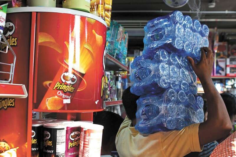 מים בלי ששון. תושב סוחב מארז בקבוקים // צילום:AFP