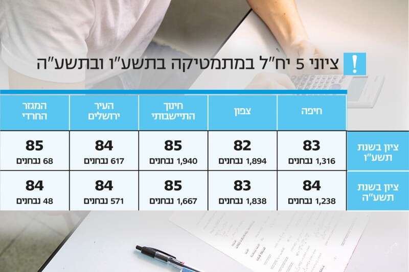 הנתונים והציונים של שנת הלימודים תשע"ו (2016), שנחשפו לראשונה ב"ישראל היום", מראים כי הציון הממוצע ב־5 יחידות מתמטיקה לא נפגע כתוצאה מהגדלת כמות הנבחנים ביחס לשנת תשע"ה (2015). העלייה במספר הנבחנים היתה עלולה להוריד את ממוצע הציונים, אלא שבמרבית המחוזות בארץ נשאר הממוצע כפי שהיה, בעוד שבכמה מחוזות היתה ירידה קלה של עד נקודה אחת.