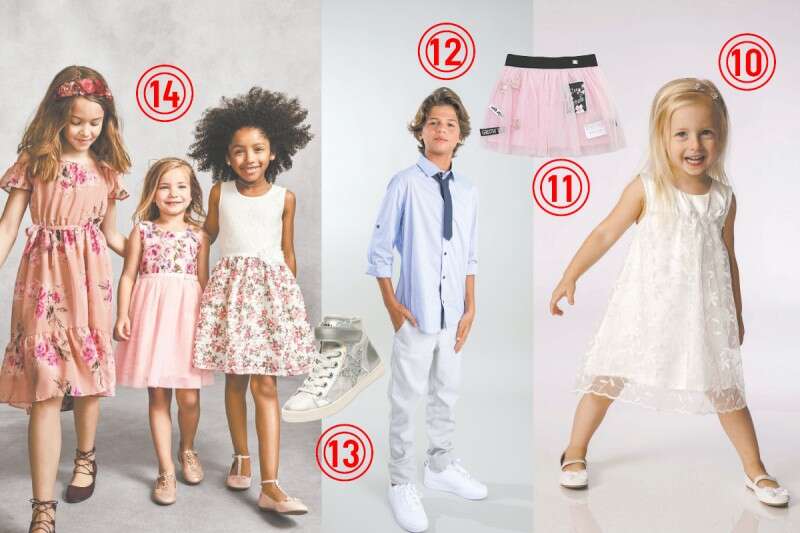 "החגיגה הכי מתוקה בחג ללא ספק שייכת לעולם הילדים", אומרת הסטייליסטית גילי סיוון־כהן, "אצל הבנות יש החג מגוון רחב של שמלות חגיגיות בצבע לבן בשילובים של בד תחרה ובדי שיפון שמוסיפים רוך ועדינות לאווירת החג. יש שמלות בהדפסי פרחים בגוני הוורוד־לילך, מעודנים ותמימים מצד אחד, אבל מצד שני בביגוד הילדים נראה העונה גם השפעות מעולם המבוגרים, כמו למשל שימוש בבדים מבריקים ומנצנצים, הרבה שמלות כסופות, לבן־פנינה עם ברק קל, חצאיות פליסה בדומה לאימהות רק בגרסה מוקטנת, וגם הנעליים כסופות ומנצנצות להשלמת המראה".