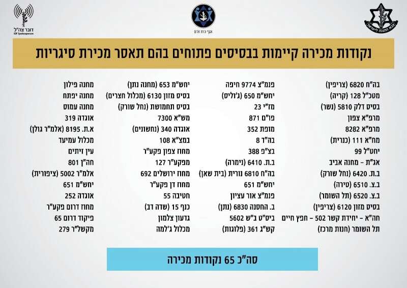 ב-1 בנובמבר תופסק מכירת סיגריות ב-65 כוורות ברחבי הצבא ביחידות הפתוחות. המכירה תאסר במקומות הגדולים והמוכרים ביותר בצה"ל, ובין השאר במחנה מטכ"ל (בסיס הקרייה), תל השומר, צריפין, בה"ד 8 ועוד. בהמשך, מתכוונים בצבא להפסיק מכירה גם בבסיסים הסגורים.