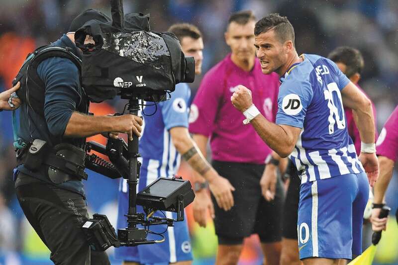 "ליגה של הרבה הפתעות". חמד במדי ברייטון חוגג שער בפרמייר ליג // צילום: אי.אף.פי