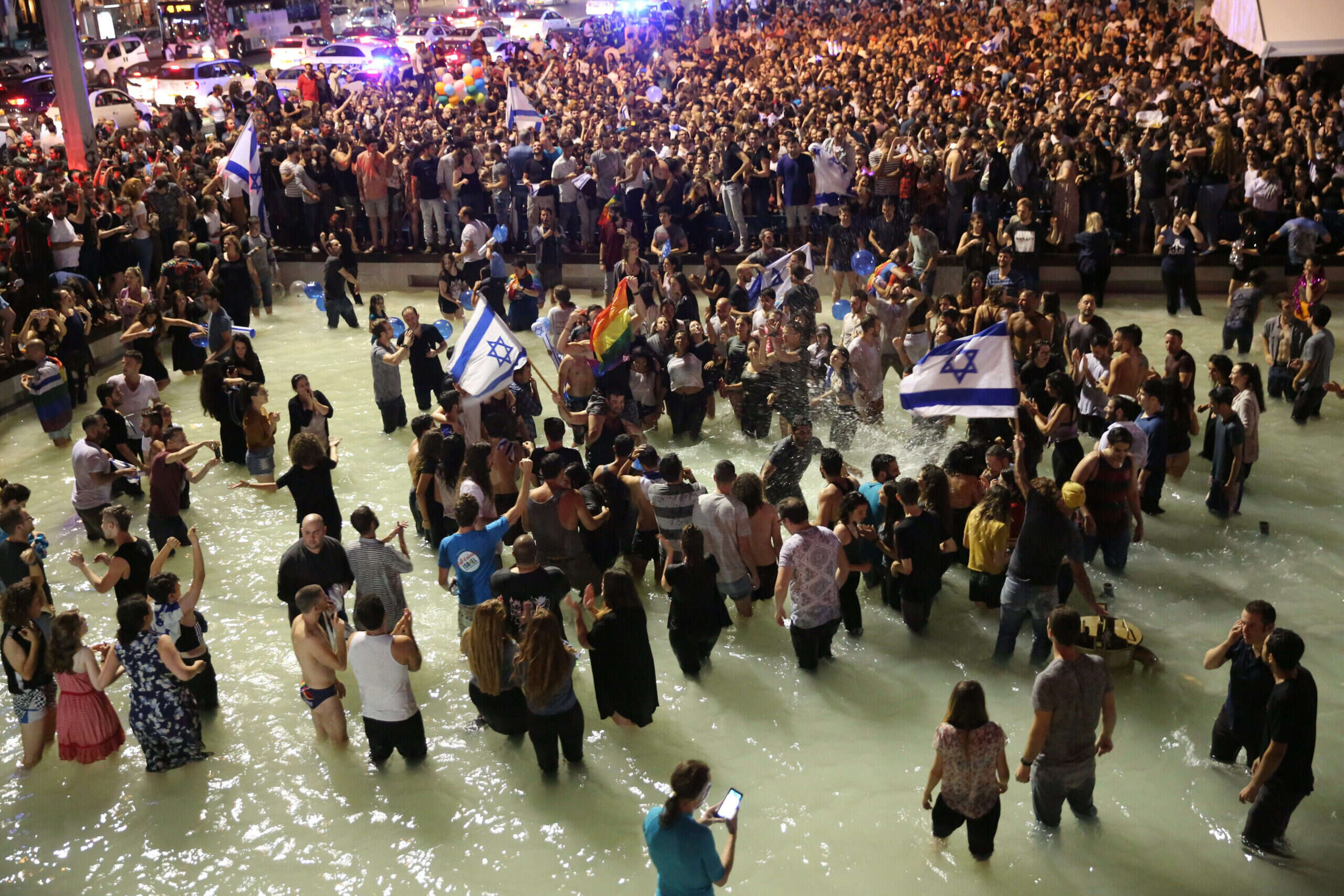 עשרות חוגגים פשטו את הבגדים שלהם וקפצו אל המזרקה שבחזית בניין העירייה כמיטב המסורת אחרי הישגים גדולים של נציגי ישראל בספורט ובמוזיקה. זו לחלוטין אחת השעות היפות של ישראל. לקול דרבוקות קפצו אלפי צעירים ומבוגרים עטופים בדגלי ישראל כשהם שרים "מי שלא קופץ קפריסין". ההכיכר התמלאה בהמון מחוות לנטע - מכובעי תרנגולת ועד כתובות בשלטי החנייה.