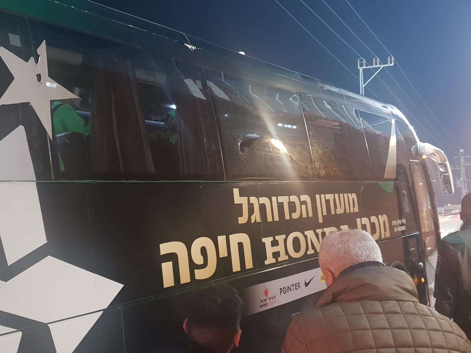האוטובוס המנופץ של מכבי חיפה, הערב בדוחא. לילה לא נעים עובר על הירוקים // צילום: ליאב נחמני