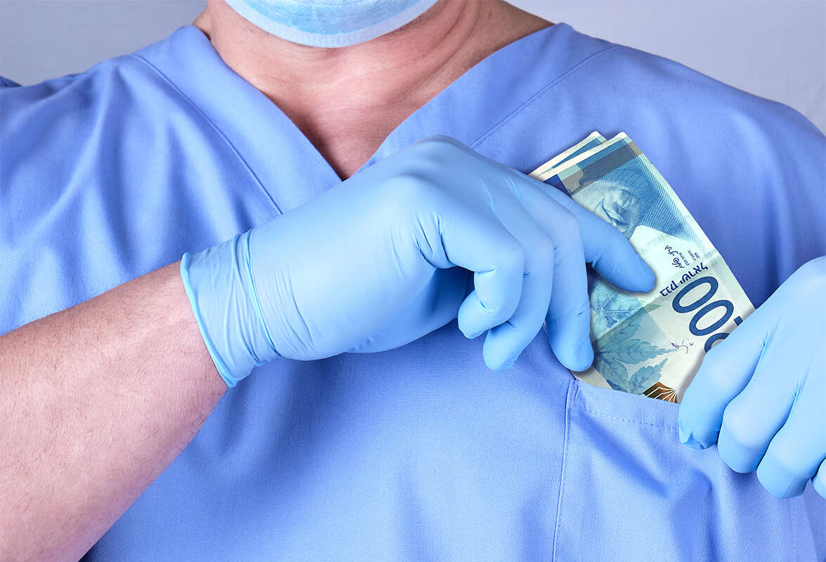 יתר על כן: חלק מהשכר הגבוה שמוצע לרופאים מבוסס על ביצוע קבוע של ניתוחים או של צנתורים ברפואה הפרטית (כך בשר"פ בבתי החולים בירושלים), או על תוספת עבודה בשעות אחר הצהריים והערב במסגרת "תאגידי הבריאות" או "קרנות המחקר", שמעסיקים רופאים בכירים בבתי החולים. הדבר עלול לגרום לביצועם של ניתוחים, צנתורים וטיפולים פולשניים שאינם הכרחיים.