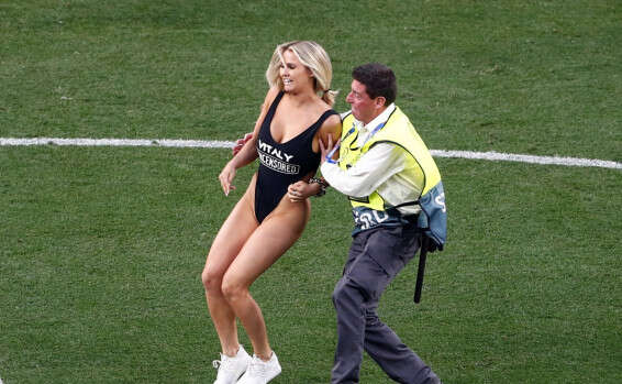 כזכור, וולנסקי היא דוגמנית אמריקאית בת 22, שנעצרה ונחקרה ע"י המשטרה, כשהיא עדיין לבושה בבגד גוף חושפני עוד לפני סיום משחק גמר ליגת האלופות. הדוגמנית ובן זוגה הבהירו כי מאחורי הפריצה המתוכננת עמד עניין פרסום האתר - Vitaly uncensored, שנמצא בבעלותו של בן הזוג, שמתמחה בצילום מתיחות סמי פורנוגרפיות.