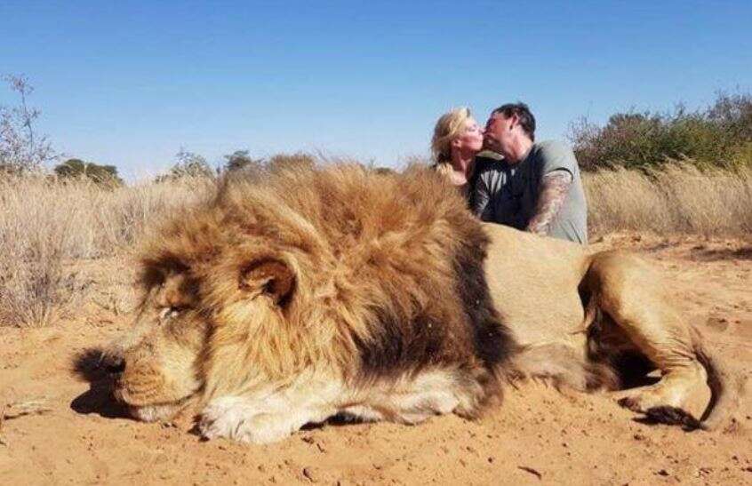 זוג קנדי שהשתתף במסע ציד בדרום אפריקה עורר סערה לאחר פרסום תצלום של עצמם מתנשקים מאחורי גופה של אריה שזה עתה ירו בו ונהרג.