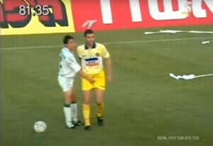 "ואז ברקוביץ' רץ ראשון עם הכדור, כשהוא צוחק כאשר ג'ון מנסה לרדוף אחריו. בסוף הוא השיג את אייל, ופשוט תיקל אותו. ברקוביץ' שכב על הדשא וכמובן כאב לו, אבל אז ג'וני אמר לו 'תפסיק להיות טיפש'. איל צעק לעברו 'לך מכאן, מה אתה עושה פה בכלל? ואז העיף לג'ון מכה ברגל. ואז הגיעה התגובה של ג'ון עם חזקה בעיטה היישר לפנים. הרעש היה מדהים, אייל צרח חזק. הוא פשוט ריסק לו את הפנים".