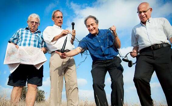 מיכאל קרפין, אברי רביד, נחמן שי ועמוס אטינגר. צילום: משה שי // הכתבים הנועזים (מימין לשמאל): מיכאל קרפין, אברי רביד, נחמן שי ועמוס אטינגר
