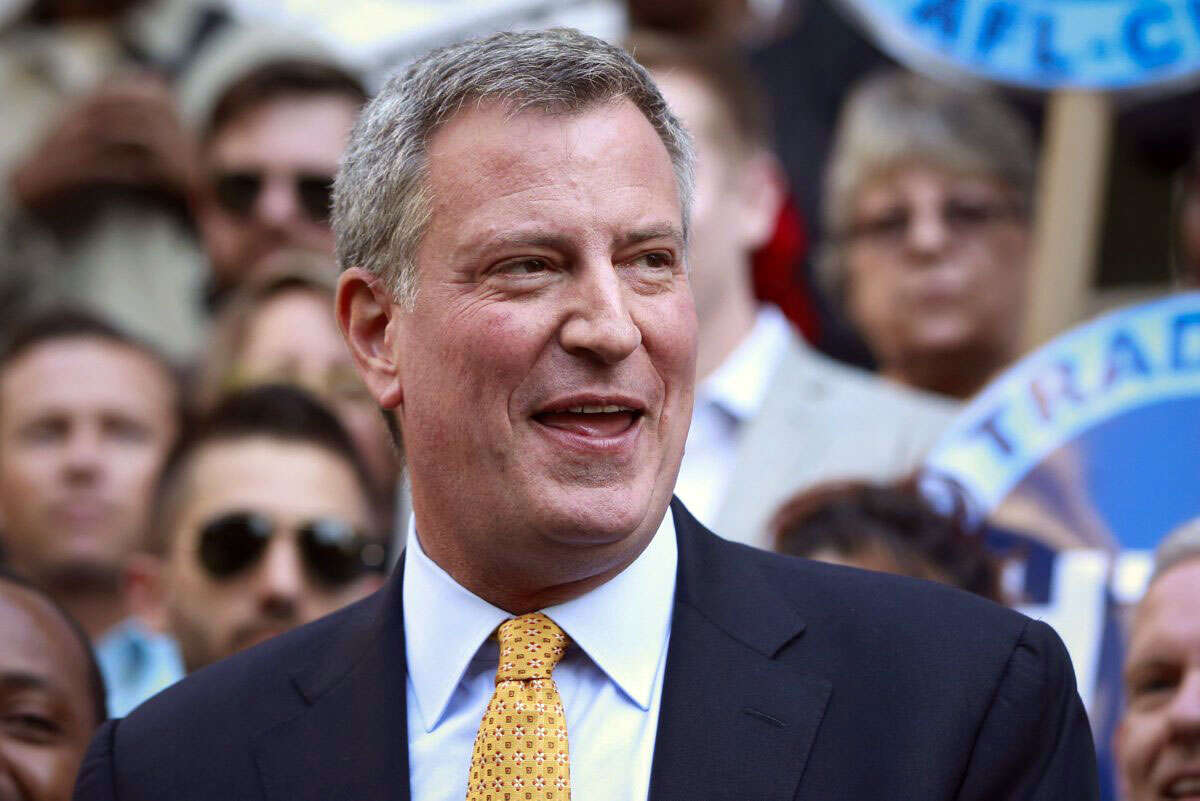 דה בלאזיו ממצב את עצמו כאנטיתזה לראש העיר הוותיק מייקל בלומברג (71), שמכהן בתפקיד כמעט 13 שנים. הוא גם תיקן בחזרה את החוק שבלומברג שינה לפני הבחירות הקודמות, שאיפשר לו לרוץ לקדנציה שלישית למרות ההגבלה על שתי קדנציות. בלומברג היה ממתנגדיה הבולטים של המחאה החברתית, שהתקיימה במשך חודשים מחוץ לוול־סטריט, ואף שלח עובדי עירייה כדי להחרים את הציוד של המפגינים. בשנות שלטונו הוא השקיע מאמצים רבים כדי להילחם בנושאים מזיקים ובלתי נחוצים, לשיטתו - ובהם הגבלה מאסיבית של עישון, מלחמה בהשמנה בעזרת איסור על מכירת משקאות מתוקים מעל חצי ליטר (200 דולר קנס) ועידוד התושבים לרכוב על אופניים.