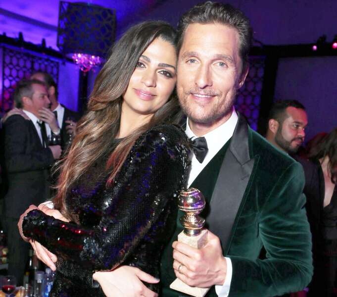 מקונוהיי ורעייתו קמילה אלבס, לאחר הזכייה בגלובוס הזהב. צילום: אי. פי