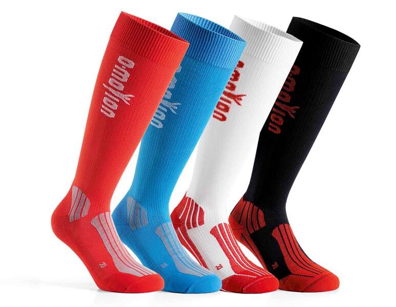 גרבי לחץ של חברת o-motion. בתפירה מיוחדת ומותאמת למתאמנים המחיר בתערוכה: 199 שקלים