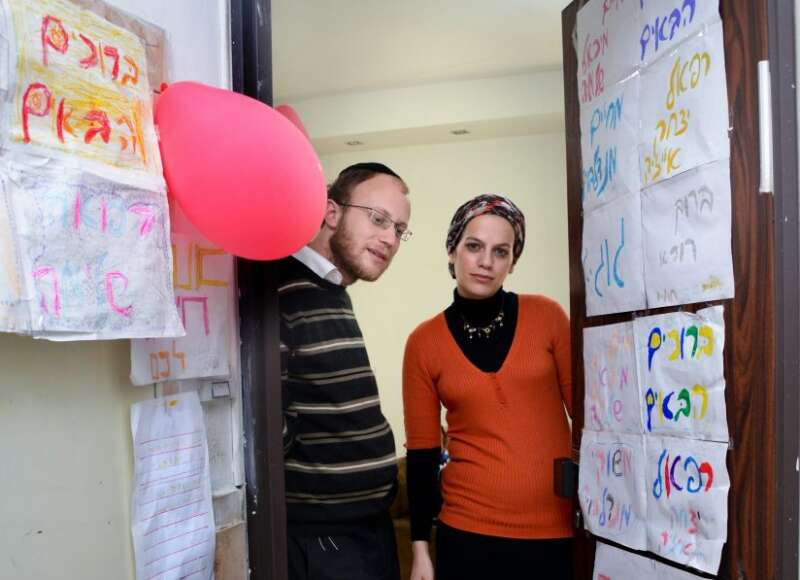 בני הזוג גרוס בכניסה לביתם בירושלים. "יהודי לא שואל לָמָה, אלא לְמַה". צילום: מאיה באומל בירגר