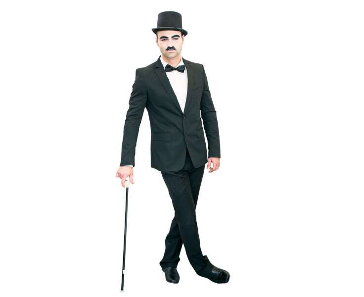 חולצה לבנה מכופתרת, מכנסיים שחורים ובלייזר שחור. האביזרים שנדרשנו לרכוש: מקל הליכה, כובע צילינדר שחור, פפיון וכפפות לבנות.