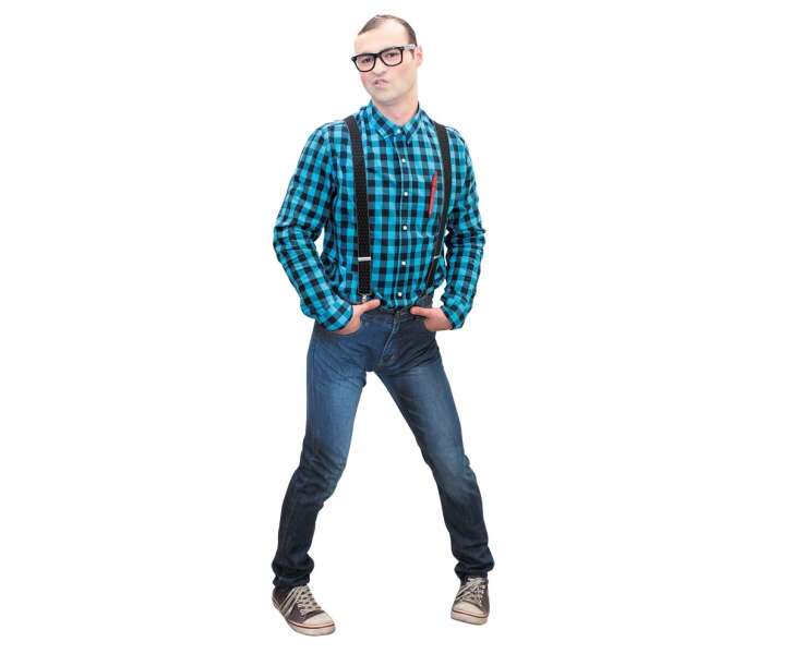 הכי פשוט, הכי חמוד ומצחיק. ג'ינס, עדיפות לכזה שאפשר להרים ממש גבוה מעל למותן. שלייקס, חולצה מכופרת משובצת, משקפיים בעלי מסגרת גדולה ומרובעת, סט עפרונות או עטים בתוך כיס החולצה, נעלי ספורט, הבעה תמימה על הפנים.