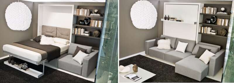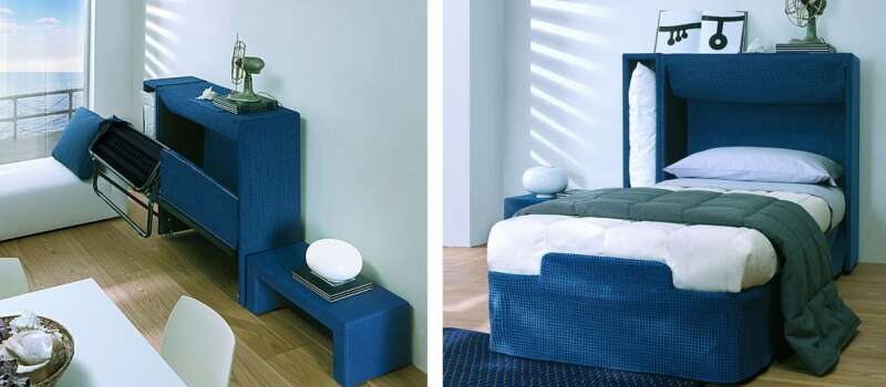 מערכת קיר עם ארון הנפתחת למיטה זוגית. צילומים: Enrico Colzani