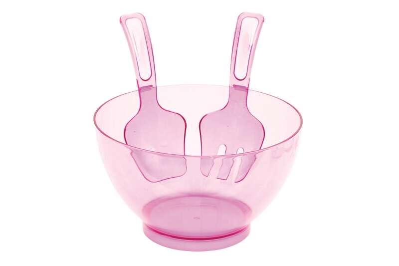 קערת הגשה עם כף ומזלג פלסטיק. להשיג ברשת נעמן. מחיר: 59 שקלים