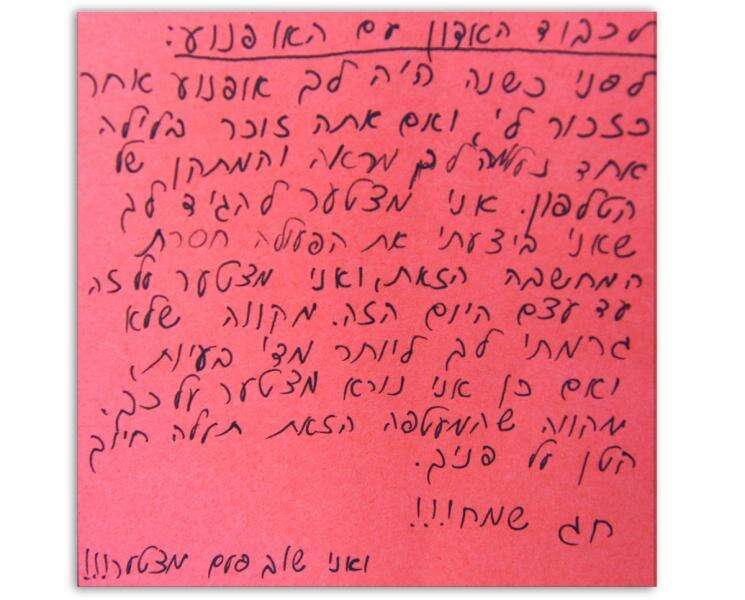רז מנשה (38) הופתע אתמול לגלות, מתחת לשמיכה שכיסתה את האופנוע שלו בחזית ביתו, בשכונת רוממה בחיפה, מעטפה שהכילה 300 שקלים ומכתב התנצלות מגנב אלמוני, שלפני שנה גנב לו מהאופנוע את המראה ואת מתקן הטלפון הצמוד אליה.