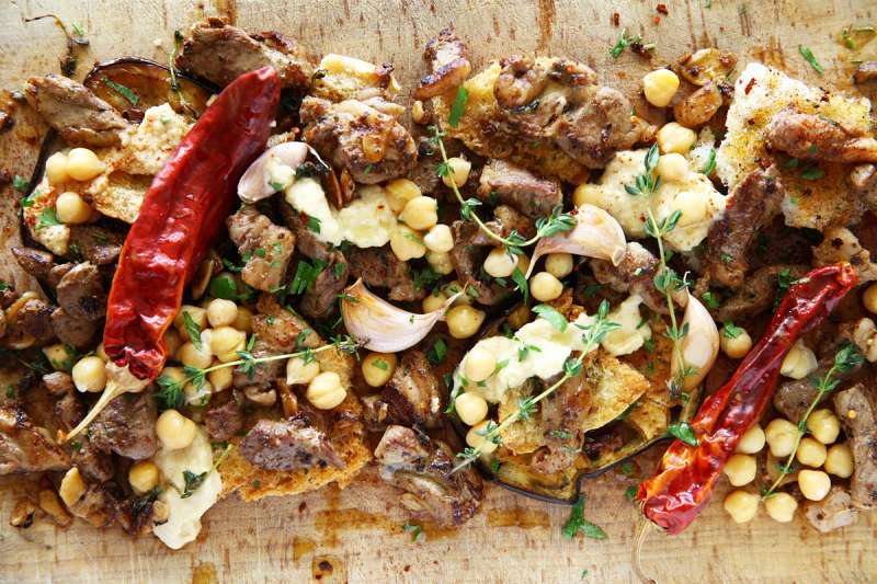 ממשיכה בשווארמה טלה, גם היא אופיינית לחך הלבנטיני. נתחי הטלה החרוכים, מסבחה עשויה לתפארת, קרעי פיתה קלויים, ואני מאושרת. מסיימת בחצי פיתה עבה וריחנית החובקת נתחוני בקר שזה עתה נצלו על המנגל, כף נדיבה של טחינה טובה וסלט עגבניות עונתי וחריף־חריף.