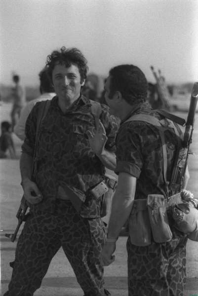 דיין על סט הסרט "מבצע אנטבה", עם יהורם גאון // צילום ארכיון: משה שי