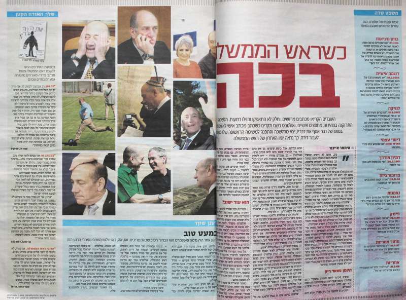 28.01.2011, השער של מוסף "7 ימים": "איך כמעט הבאתי שלום" מתפייט אולמרט בכתבת ענק: "מבט נדיר מבפנים: אהוד אולמרט חושף את סודות המו"מ לשלום שניהל עם הפלשתינים".