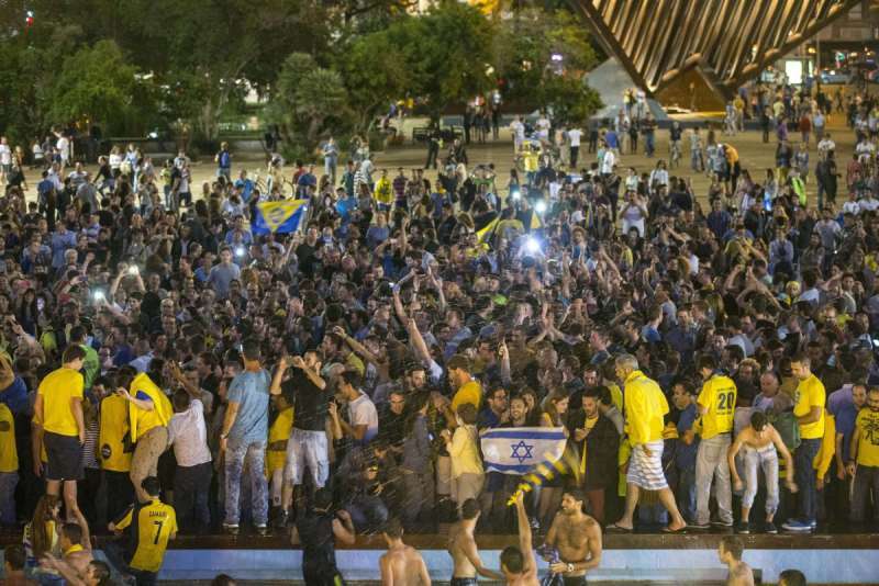 הצהובים חוגגים בכיכר רבין, שהפכה לכיכר מילאנו // צילום: מאיר פרטוש