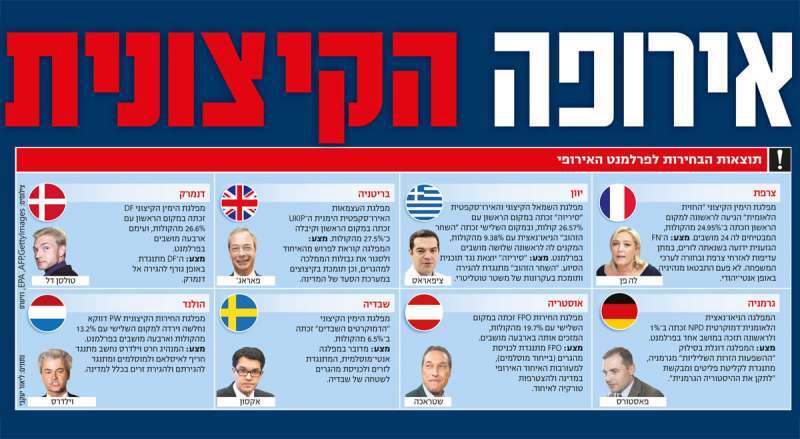 אירופה התעוררה אתמול לעידן פוליטי חדש וקיצוני בהרבה, לאחר שמפלגות מהשמאל הקיצוני ובעיקר מהימין הקיצוני ביבשת התחזקו בבחירות שנערכו בסוף השבוע לפרלמנט האירופי. לגוף זה אמנם אין סמכויות בעלות תוקף, אך התוצאות משקפות את הרוח הדומיננטית בקרב האזרחים ב־28 המדינות החברות באיחוד.